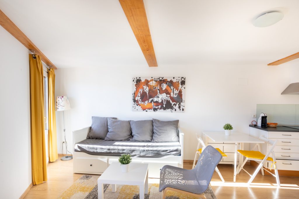 1 chambre double et un séjour avec un canapé convertible en deux lits de 90