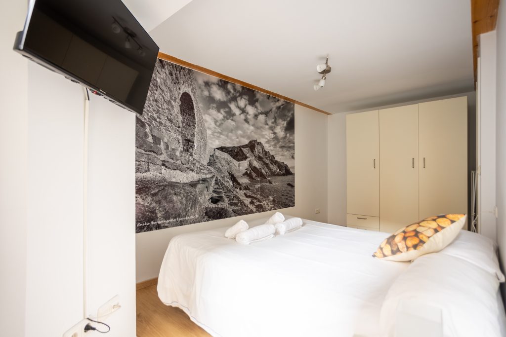 Bermeo Museoa, est situé au troisième étage et a une capacité de 4 personnes. Il dispose d’une cuisine complète, d’une salle de bain, d’une chambre double et d’un salon avec un divan convertible en deux lits de 90 cm. Il est équipé d’une Smart TV 42 », du wifi et du service netflix.