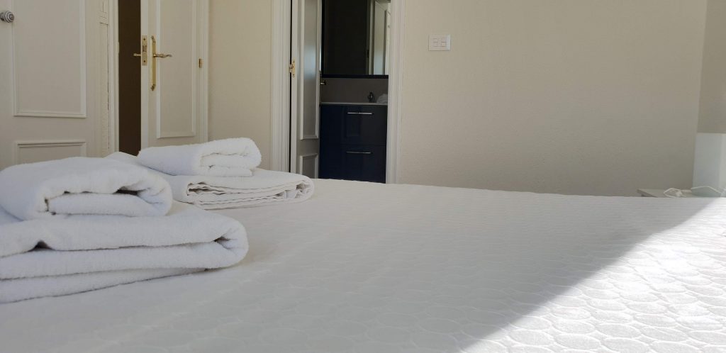 L’appartement comprend trois chambres doubles, une cuisine-salle à manger, un salon et deux salles de bains. Capacité d’accueil de 6 personnes.